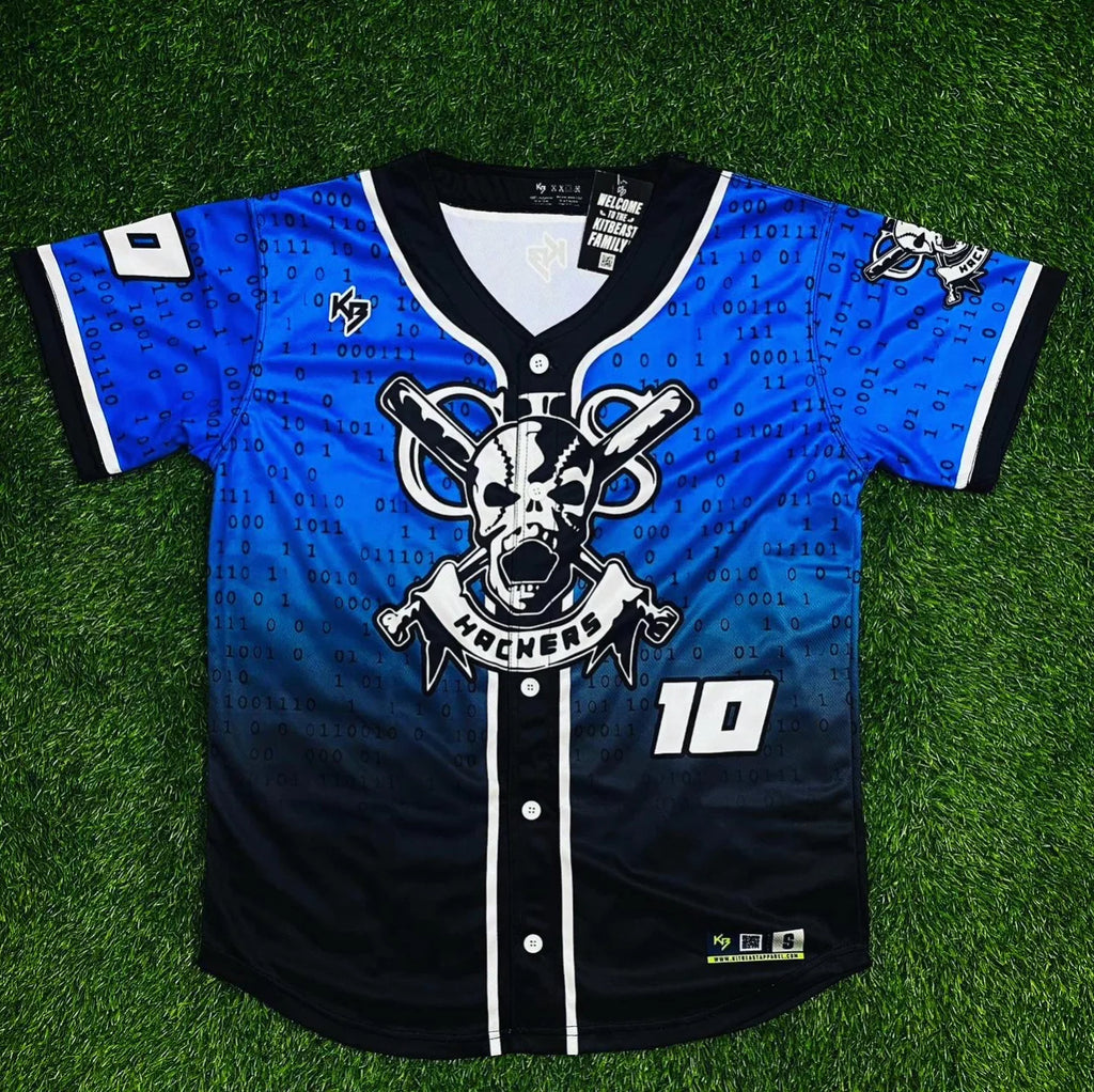 Represent you and your team in style with the KitBeast Scared Hitless Button Down Custom Softball Jerseys (Home + Away). Designed and manufactured exactly the way you want!