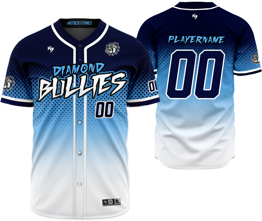 Represent you and your team in style with the KitBeast Diamond Bullies Button Down Custom Softball Jersey. Designed and manufactured exactly the way you want!
