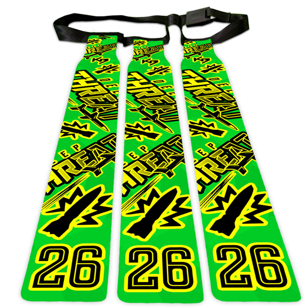 Make sure your team stands out with our fully Deep Threat Custom Triple Threat Flags + Belt. Designed for performance and built to match your team’s uniforms, these Custom Flag Football Flags take your game — and your look — to the next level.